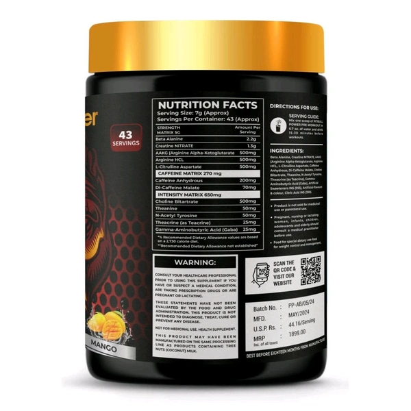 convenient to reach nutrient goals without compromising on taste or texture.Simple to Use - Easily prepare a serving of PITBULL POWER PREWORKOUT by mixing a scoop with water, or juice and enjoy the benefits of helping you to achieve your desired physique and fitness level
